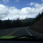 For the return trip Mount Hood was now on our right, it was cloudy with an off and on a light misty rain so we never did see the top. All the roads going up were gated closed, the 1 road we did find was covered in snow and no tire tracks so we headed home, by passing a couple more falls hikes that were a mile or more hikes, after the unexpected 5 mile hike we were on the tired side, so we headed home.